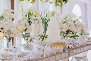 White wedding flowers are tried and true–like lilies, orchids, roses, anemones, and gypsophila. You can nod to Pantone in your wedding colors by choosing florals in shades of soft white.