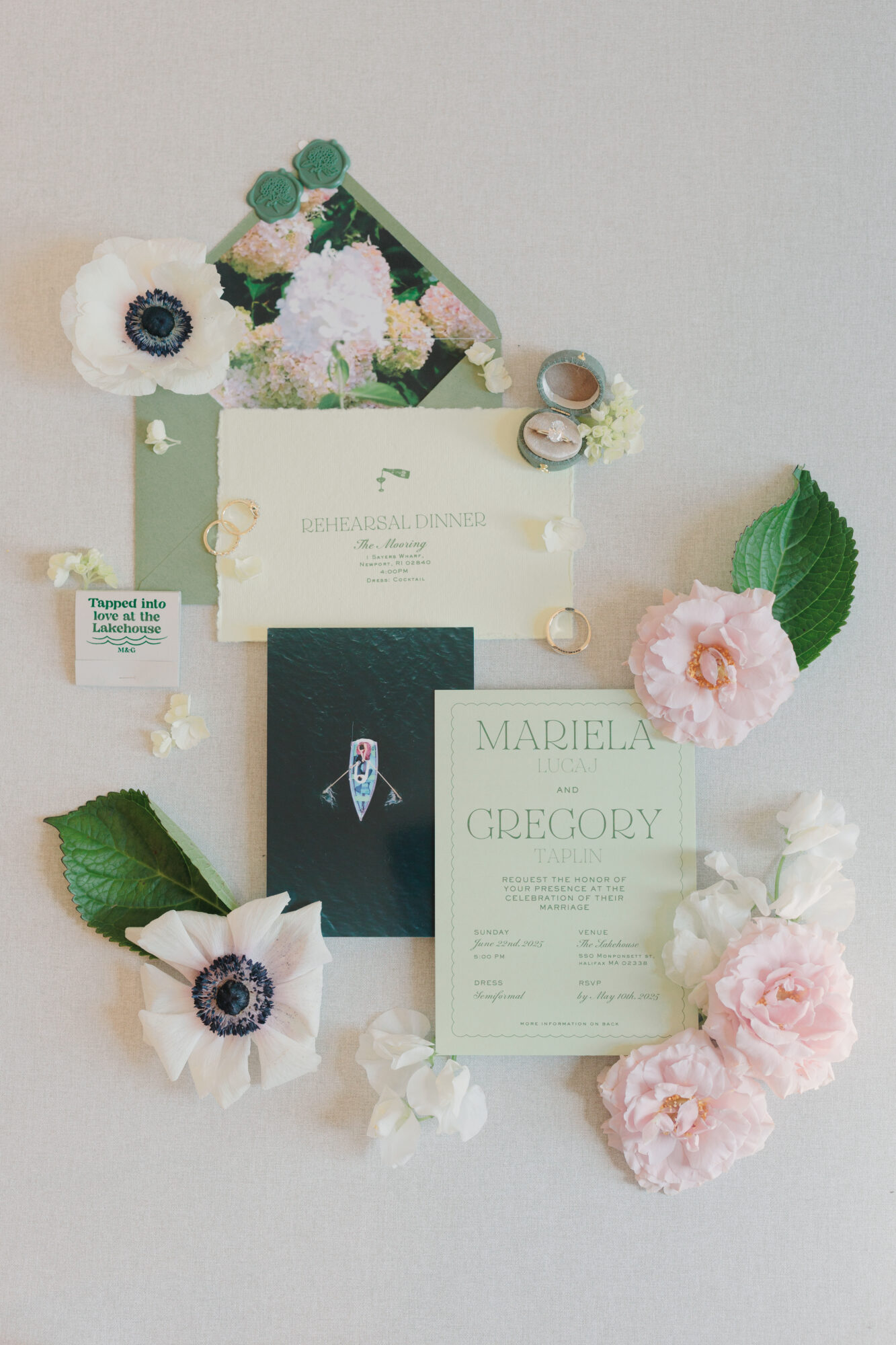 Pretty pink, yellow, and green details added a fresh, romantic touch to the day’s design. Every detail reflected their love and the joy of a summer wedding by the lake.