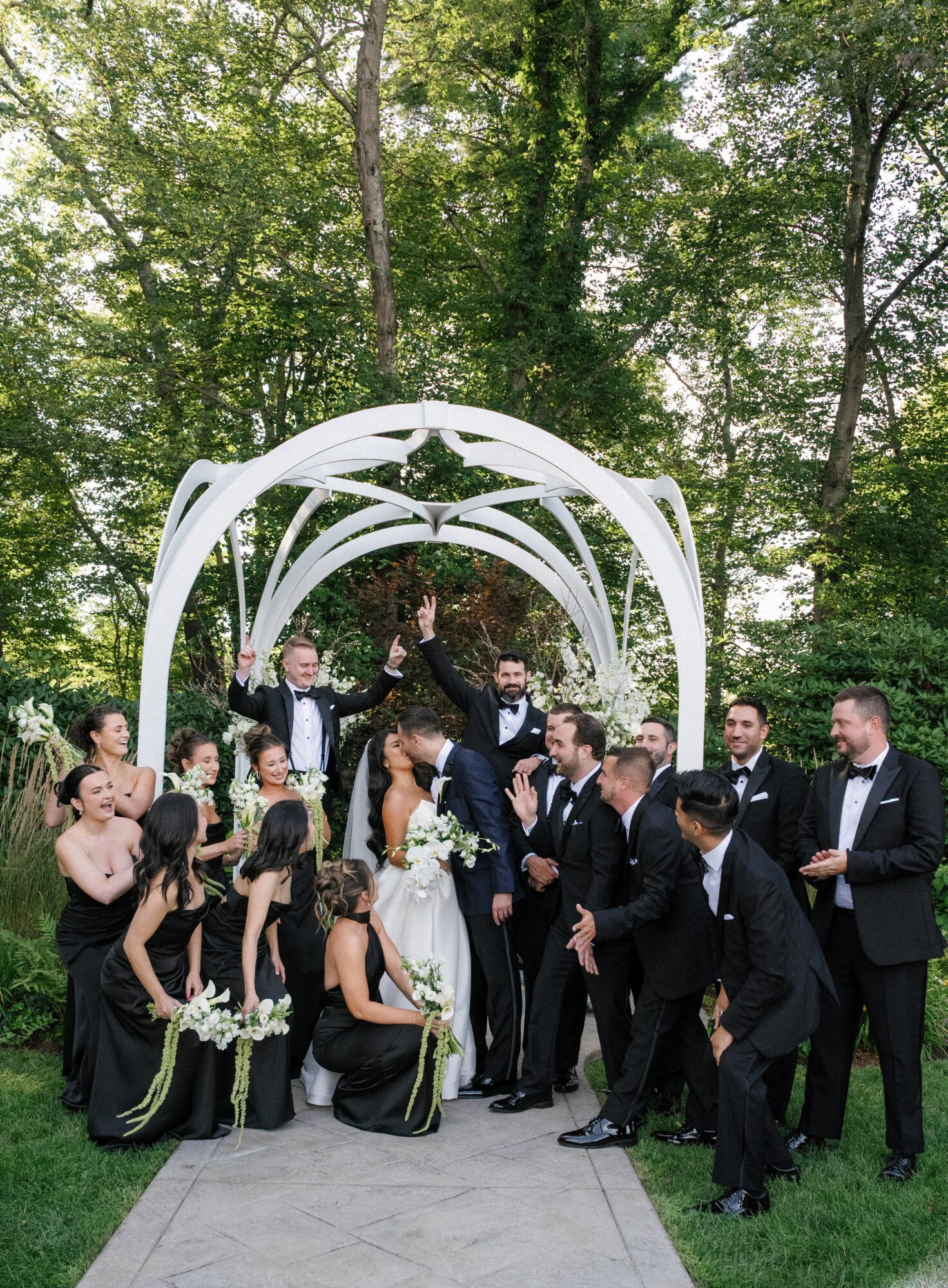 AvenirFrom the classic black and white color scheme to the white and green florals, Vy and Jamie’s late summer wedding at Avenir was effortlessly elegant. Their day began with a first look and plenty of fun (and a few formal!) wedding party photos on the venue’s grounds, which were lush and green for the first Friday in August.